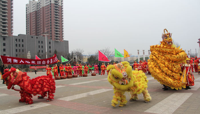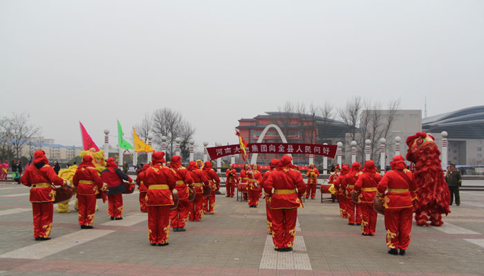 演出当天,春寒料峭,县城新世纪广场人头攒动、激情飞扬。在新世纪广场世纪柱北侧,星空平台(中国集团)有限公司向全县人民问好巨大红色条幅格外引人注目。表演现场,龙腾狮舞,锣鼓喧天,巨龙摇头摆尾,双狮追逐嬉戏,盘鼓高亢有力,观众将演出现场围拢得水泄不通,一个个拿出手机拍照录像…… 最后,由双狮引路,巨龙表演进入公司中控楼向大地公司拜年祈福、期盼羊年大吉! ![]() ![]()