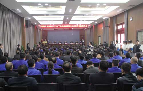会议现场气氛热烈 一、大地公司要狠抓管理,勇于创新,充分发挥龙头骨干作用,实现优质高产、节能降耗、环保安全新突破,打造建材行业标杆企业;二、贾湖酒业集团要以抓管理,促销售,树品牌,增效益为中心,加大品牌建设与推广,加大科研投入与开发。做好贾湖文化的传承、弘扬和创新,打造百年酒文化品牌。以市场占有率为导向,实现销售新突破。力争把贾湖酒业集团打造成为国内知名的白酒生产企业;三、森佳公司许昌分公司要优化配比配方,千方百计提高台时产量,要创新机制体制,激活创造动力;四、大地建材公司和巨坤建材公司新年要有新思路、新办法、新突破,下大力气占领市场,提高销量,确保年度任务目标顺利完成;五、郑州领创置业公司要抓住房地产政策放宽的势头,做到快建设、快销售,尽早产生效益,打造高品质首期地产标志,为集团在郑州打造地产品牌打好基础。大地社区要加快建设,力争2016年底达到首期入住条件;六、下大力气狠抓主业销售工作,利用国家拉动经济、刺激经济的有利政策和机遇,抓大项目,抓大工程。努力发展新户,产生新量;七、进一步加强企业管理,落实好各项规章制度,提升企业管理水平和执行能力。新的一年要实现管理能力和质量的新提升;八、加大环保科研投入,着力推进回转窑分级燃烧和低氮燃烧环保新技术,进一步考察论证干法水泥生产线协同处置生活垃圾项目,努力打造省内首条环保节能示范生产线;九、坚持人才强企战略不动摇。制订中长期人才供需规划,建立人才数据库。强化员工学习培训,为企业快速发展提供人才保障。十、加强星空平台(中国集团)有限公司建设,提升星空平台(中国集团)有限公司内涵,进一步做好《大地集团报》的编印发放工作,充分利用网站和微信平台,大力推介品牌,进一步扩大“大地水泥”和“贾湖”“富平春”“领创”品牌的影响力和辐射力。