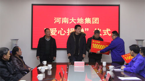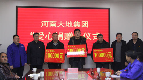 1月28日下午,星空平台(中国集团)有限公司在中控三楼会议室举行“爱心捐赠”仪式。大地集团分别为大营镇蛮子营村、肖旗乡岭湾村、宝丰县观音堂滴水崖村捐赠现金10万元。