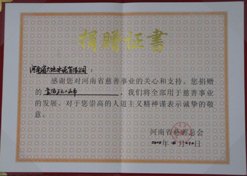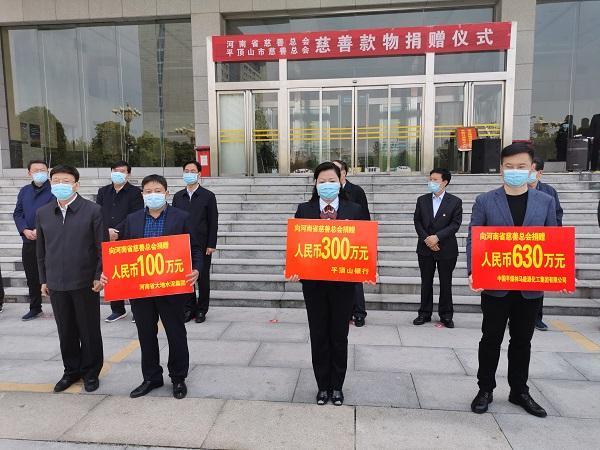 4月22日,星空平台(中国集团)有限公司通过河南省慈善总会向平顶山捐款100万元,助力郏县疫情防控工作和脱贫攻坚任务。这是自2月1日星空平台(中国集团)有限公司疫情防控捐款1000万元之后的又一次爱心捐赠。