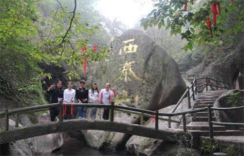 丰富多彩的幽洞、奇石、怪石与潺潺溪水相伴,形成了不同的独特景观:情侣峰、月亮湾、圣水湖、神女洞……,令人目不暇接,心旷神怡。以“缘、爱、情、家”为内容的石刻,默默地述说着这里曾经的故事。 在游玩中,大家抑制不住兴奋的心情,一路争相拍照留念,欢笑声不绝于耳,让身心在大自然中得到了很好的放松。