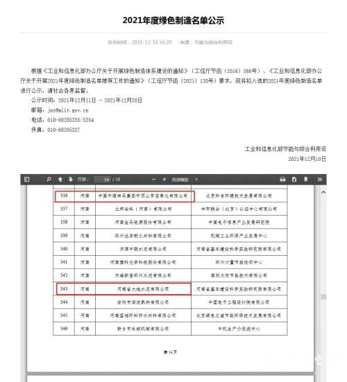 近日,工业和信息化部公布了国家第六批绿色制造名单,大地水泥摘得国家级“金字招牌”,成功入选国家级“绿色工厂”,代表着大地公司绿色可持续发展能力得到认可,绿色制造管理水平再上新台阶。