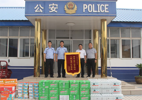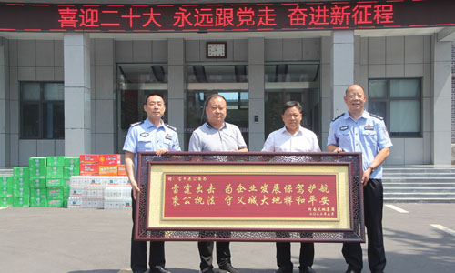 警企携手,共建平安。6月29日上午,大地集团总裁王国杰、副总裁张怀点一行先后来到宝丰县张八桥派出所、宝丰县公安局,慰问高温下坚守执勤的一线民辅警,送来了矿泉水、绿茶、方便面、火腿肠等爱心物资。县公安局党委委员、副局长李长江,党委委员、副局长李国峰,党委委员、政治处主任宋晓东,张八桥派出所所长尚小伟给予了热情接待。