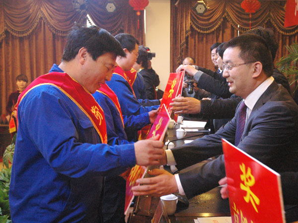 2013年3月16日上午,大地公司北会议室内座无虚席、掌声雷动,到处洋溢着喜庆祥和气氛,大地集团2012年度工作总结暨表彰大会隆重召开。副县长魏学君、县总工会主席郭鹏飞、集团领导、受表彰的先进工作者、优秀经销商、供应商及部分职工代表共700多人参加了会议。 会议由党委副书记王福文主持。会议首先由集团董事长张彪作工作报告。报告对2012年的工作进行了系统回顾总结,充分肯定了所取得的成绩,同时指出了工作中存在的不足和问题,分析了当前面临的形势和任务,并对今年的目标任务提出了明确的思路和要求。对做好2013年的工作,张董事长强调重点抓好7个方面的工作:一、坚持强管理、促销售、创高产、增效益、勇创新的指导方针。二、积极引进先进生产管理人才和技术人才,创造先进的管理模式,加强与先进企业的对标管理,促进生产制度和管理制度的创新,使经济技术指标达到或超过同行业的先进水平。三、坚持“至高品质、至诚服务”的宗旨不动摇,坚持走名牌销售战略,充分发挥大地水泥的品牌优势,鼓励培育专营经销商,并向2级、3级网点发展,牢固占领现有市场,努力拓展新市场。四、加快现有项目的建设进度,确保按计划竣工投产。五、继续坚持“人才是企业第一资源”的指导思想,根据企业发展需要,制订公司中长期人才供需规划,建立人才数据库,为企业快速发展提供人才保障。六、不断充实星空平台(中国集团)有限公司核心内容,将良好的星空平台(中国集团)有限公司渗入企业肌体,形成一个风气正、人心齐、奋发向上、包容和谐的良好氛围,为企业的快速发展提供动力和正能量。七、进一步绿化、美化厂区,做好厂区环境整治,打造环境最美的花园式企业。 会上,集团总裁崔泉发宣读了“关于表彰2012年度先进集体和先进个人及优秀经销商、供应商的决定”。对荣获劳动模范、技术能手、忠诚卫士、先进集体、先进工作者代表和优秀经销商、供应商代表进行了颁奖。先进单位代表、先进工作者代表、优秀经销商代表分别作了典型发言。 最后,魏学君副县长作了重要讲话。他说,大地集团已连续五年蝉联宝丰县纳税第一名,特别是2012年,在建材市场形势严峻的情况下,仍实现纳税达1.4亿元,连续两年成为我县纳税超亿元企业。县委、县政府将一如既往地高度关注大地集团的发展,努力为大地集团营造更加宽松、更加良好的经济发展环境,坚决做好大地集团发展的坚强后盾。希望大地集团抢抓机遇,创新科技,做大做强,为县域经济的发展作出新的更大的贡献。