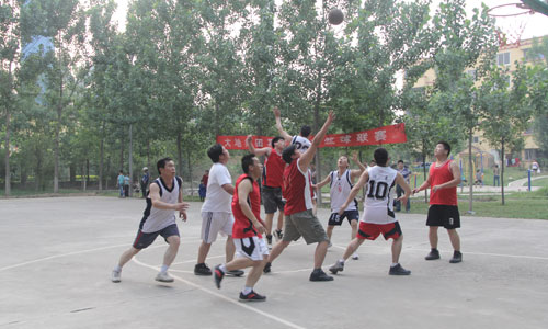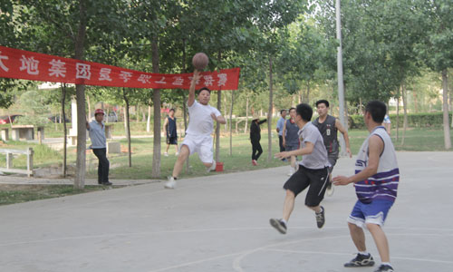 5月17日下午,大地集团篮球场上热闹非凡,欢呼声、加油声、掌声不断响起。集团2013年夏季职工篮球联赛正在激烈进行。 本次篮球联赛由集团工会组织,来自各个单位、职能部门的40多名员工组成4支球队参加了比赛。比赛采用单循环赛制,4支球队两两进行比赛。赛场上,运动健儿们意气风发,奋力拼搏,赢得了观众们阵阵呐喊助威。经过3天的小组循环、复赛、半决赛、决赛,后勤联队荣获冠军,设备保全处荣获亚军。