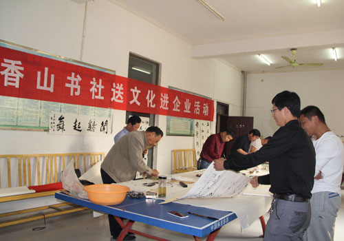 秋风送爽,翰墨飘香。10月18日上午,宝丰县香山书社一行在中国书法家协会会员、香山书社社长赵丰军的带领下,到大地集团写书送画,创作交流,给广大职工送来一份文化大餐。