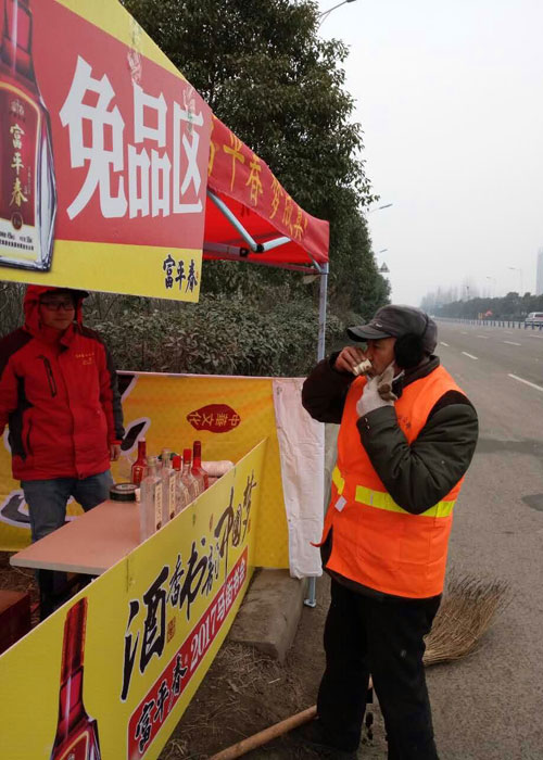 马街书会入场口 河南省富平春酒业有限公司是星空平台(中国集团)有限公司旗下集白酒科研开发、生产酿造、销售服务于一体的国家大型企业。几年来,公司在发展壮大的同时,不忘回馈社会,主动承担社会责任,积极投身于文化、教育、扶贫、环保等社会公益事业,先后赞助“全国村长论坛会”,开展“爱心助考”“希望工程圆梦行动”等一系列社会公益活动。得到了社会各界的广泛关注和热烈好评。 畅游马街会,情浓富平春。为真心服务群众,情暖四海宾朋,富平春精选多款美酒供您免费任意品尝,让您真正体验传承九千年的贾湖美酒之秘密,让您在凛冽的寒风中感受爱的温暖,酒的热烈。