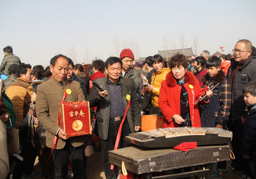 这会累了!停下来歇一会!来自安徽界首市的老艺人一曲唱罢,拿起一瓶富平春酒准备喝上两口。笔者上前问起美酒的来历,他告诉笔者地上摆着的几瓶酒都是人家富平春酒业公司人员免费送的,还有扫码获得的。 经过采访得知这位老艺人是安徽省界首市仁寨乡幸福村的,名叫陈玉雪,是第一次来赶马街书会,这次他们是组团来的,联合了附近14个民间艺人一起来赶马街书会。他18岁开始学戏,今年61岁了还在经常参加当地的一些演出活动。他在书会上亮艺演唱河洛大鼓《打棒槌》、《刘四姐挨打》等段子。 “经常喜欢喝点酒,这不唱累了,喝一点提提劲,再唱!”他还说马街书会这个大平台太好了,还有这么多爱戏的群众,还有热心周到的服务,在会上还得到了这么好的美酒礼物,明年的书会一定还要来。 古老的马街书会作为曲艺人的圣地,每年都召唤着他们前来献艺交流,富平春酒业在书会大派送活动中惦记着这些来自全国各地的民间艺人,为他们送上了富平春美酒来为他们演出助兴,拿到酒的艺人都非常高兴,一个劲的夸赞富平春酒业想得真周到。