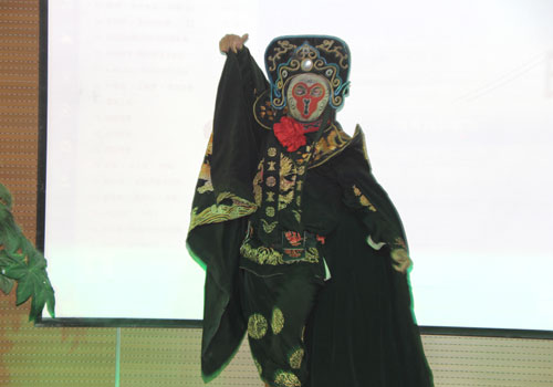 电气部职工贾云鹏演唱的《精忠报国》 荣获一等奖的郭会娟正在激情高歌 来自夏风庆典公司精彩节目《变脸》 职工石俊华演唱的《隐形的翅膀》 来自烧成车间职工余国胜自弹自唱的《站台》 集团领导为获奖人员颁奖并合影留念 |