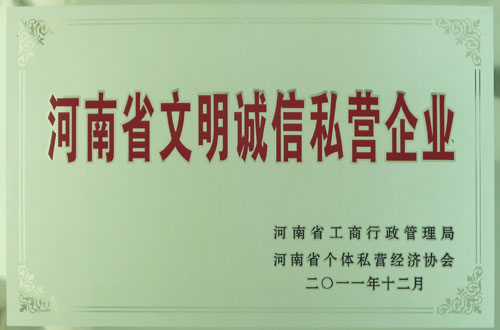首页 >> 星空平台(中国集团)有限公司 >>资质荣誉 >> 河南省文明诚信私营企业