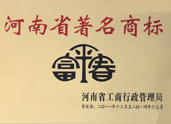 首页 >> 星空平台(中国集团)有限公司 >>资质荣誉 >> 富平春酒被授予河南省著名商标